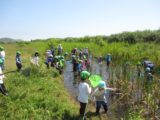 ビオトープに行ってきました! ひまわりさんとさくらさんがバスに乗ってビオトープに行ってきました。去年は途中で雨が降って来て大慌てで帰って来ましたが、今年はとってもいい天気でした。 みんな嫌がらずに大胆に池に入り、「たも」を使って池の中のたくさんの生き物と触れ合うことができました。