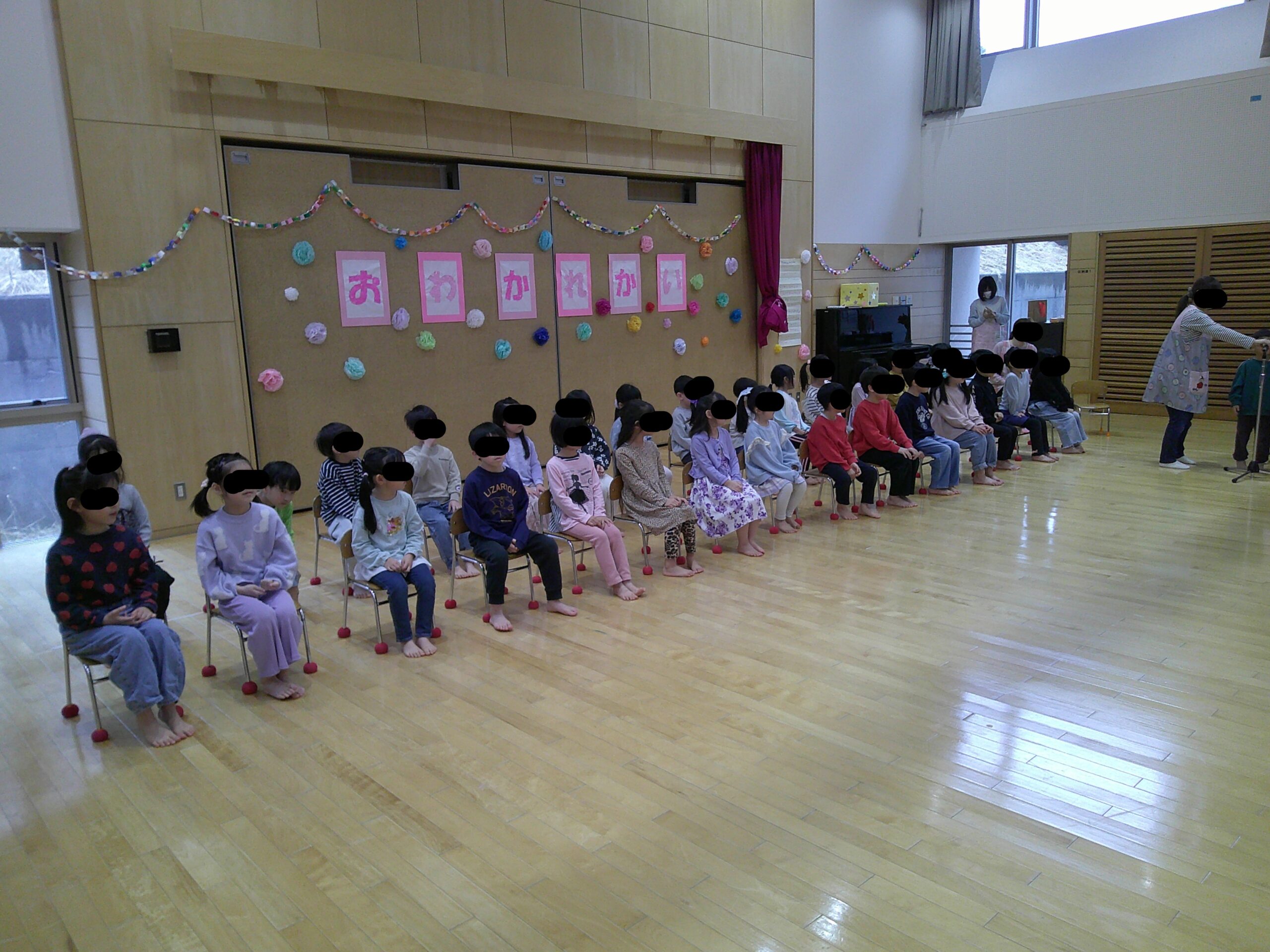 保健指導がありました! 3月18日、さくら組(5歳児)の子ども達対象に、看護師さんより「うんちができるまで」の保健指導がありました。みんなが食べた物が体の中でどのように消化されて身体を動かす栄養になっているのか、体の中の臓器はそれぞれどんな働きをしているかなどについて、看護師さんの手作りの身体模型とパネルシアターで楽しく教えてもらいましたよ!お腹の中の小腸・大腸は5メートルくらいの長さだと知り、子ども達はびっくりしていました!どんな生活をすれば良いうんちといわれる「バナナうんち」がでやすくなるかなど、自分の体について学んだ貴重な時間となりましたよ!